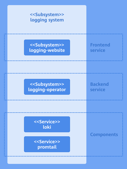 Component layer: This layer provides critical capabilities for the logging system, including log collection, storage, and processing. It supports integration with the backend layer, enabling users to efficiently perform log operations.