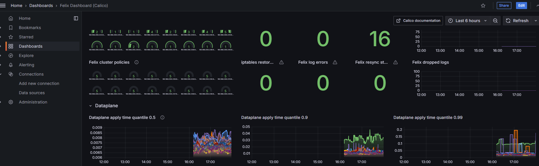 已知问题: Grafana目前暂无用于监控Calico-Kube-Controllers的预设仪表盘,仅提供针对Felix与Typha组件的监控视图。